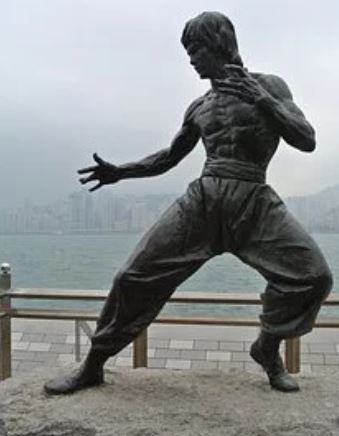 La estatua de Bruce Lee de Hong Kong es un homenaje y monumento funerario que surgi贸 como iniciativa de su club de fans, que reuni贸 los 100.00 dol谩res necesarios para su construcci贸n. Est谩 fabricada en bronce por el artista Cao Chong-en y mide 2,5 metros de alto.